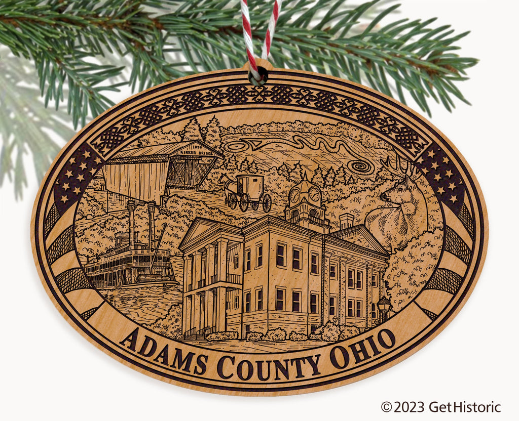 Celebrate the history of Adams County with our exclusive Natural Wood Engraved Ornament. One side will feature unique artwork telling the story of your county's history. The other side features a FREE personalization to create a cherished keepsake. If you choose not to personalize, our Get Historic logo and scrollwork will be engraved.