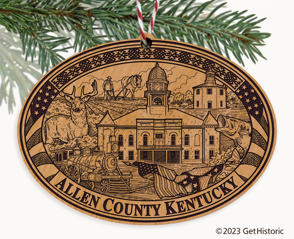 Allen County Kentucky Natural Wood Engraved Ornament