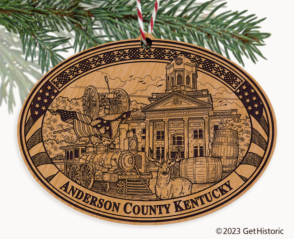 Anderson County Kentucky Natural Wood Engraved Ornament