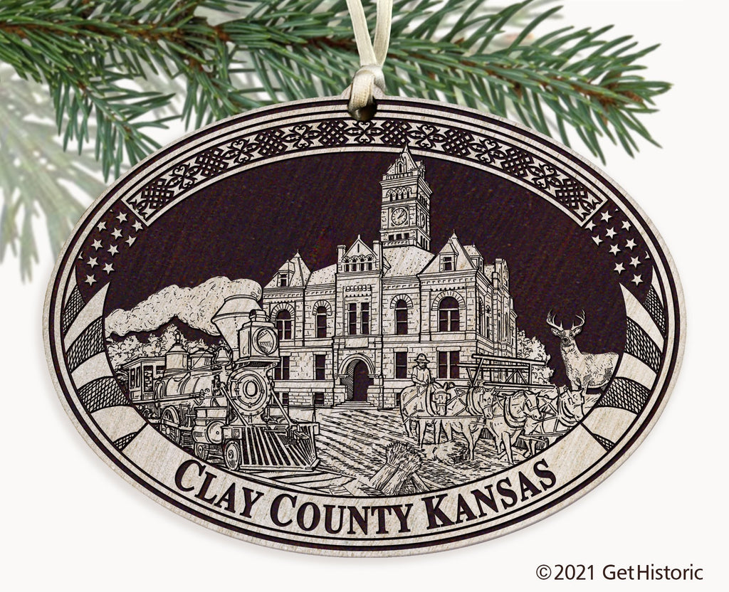 Clay County Kansas Whitewash Wood Engraved Ornament