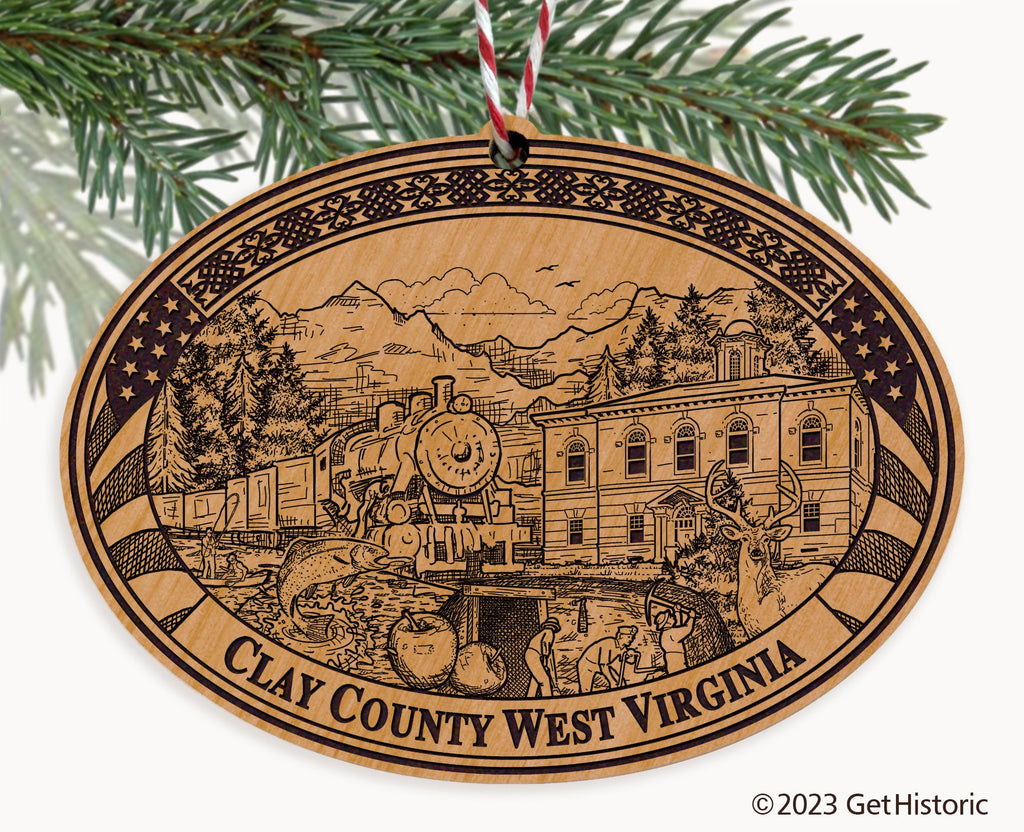 Celebrate the history of Clay County with our exclusive Natural Wood Engraved Ornament. One side will feature unique artwork telling the story of your county's history. The other side features a FREE personalization to create a cherished keepsake. If you choose not to personalize, our Get Historic logo and scrollwork will be engraved.