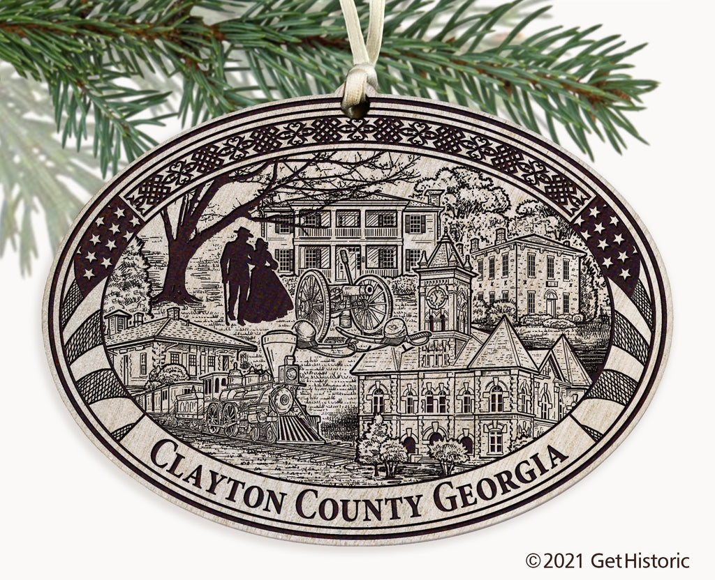 Clayton County Georgia Whitewash Wood Engraved Ornament