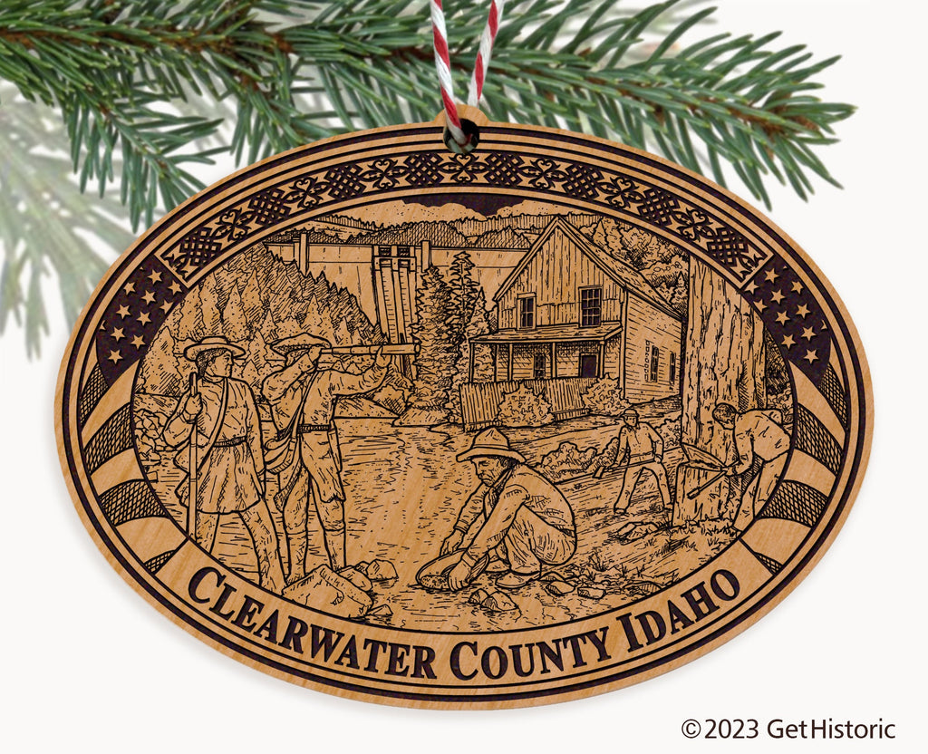 Clearwater County Idaho Natural Wood Engraved Ornament