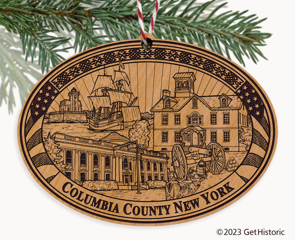 Celebrate the history of Columbia County with our exclusive Natural Wood Engraved Ornament. One side will feature unique artwork telling the story of your county's history. The other side features a FREE personalization to create a cherished keepsake. If you choose not to personalize, our Get Historic logo and scrollwork will be engraved.