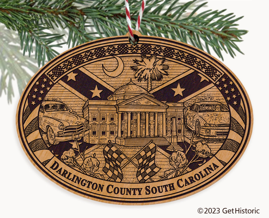 Darlington County South Carolina Natural Wood Engraved Ornament