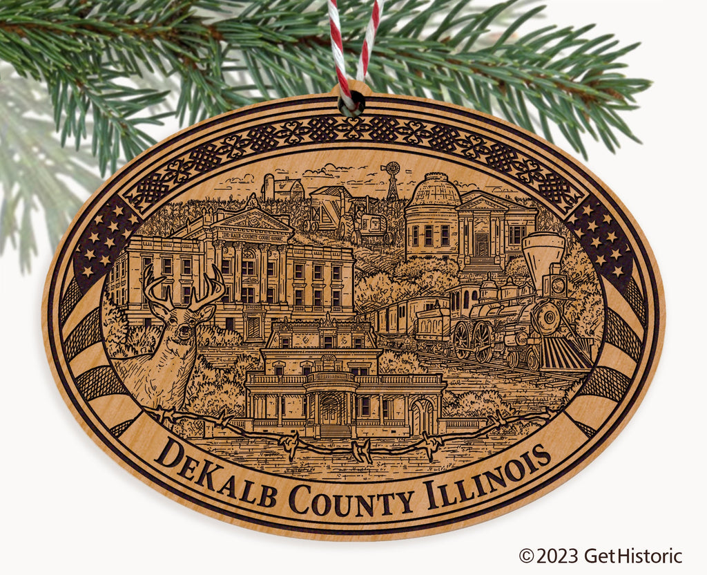 DeKalb County Illinois Natural Wood Engraved Ornament