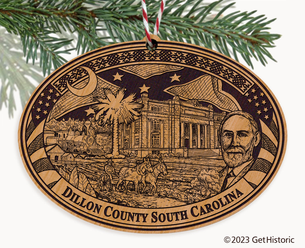 Dillon County South Carolina Natural Wood Engraved Ornament