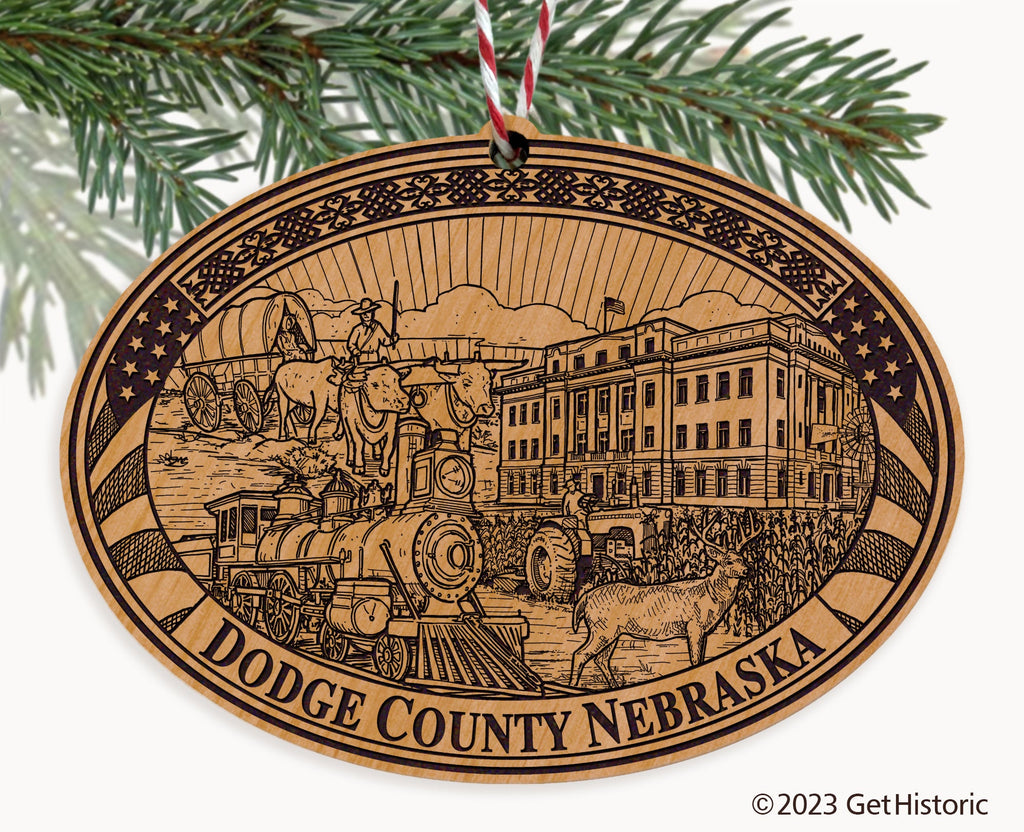 Dodge County Nebraska Natural Wood Engraved Ornament