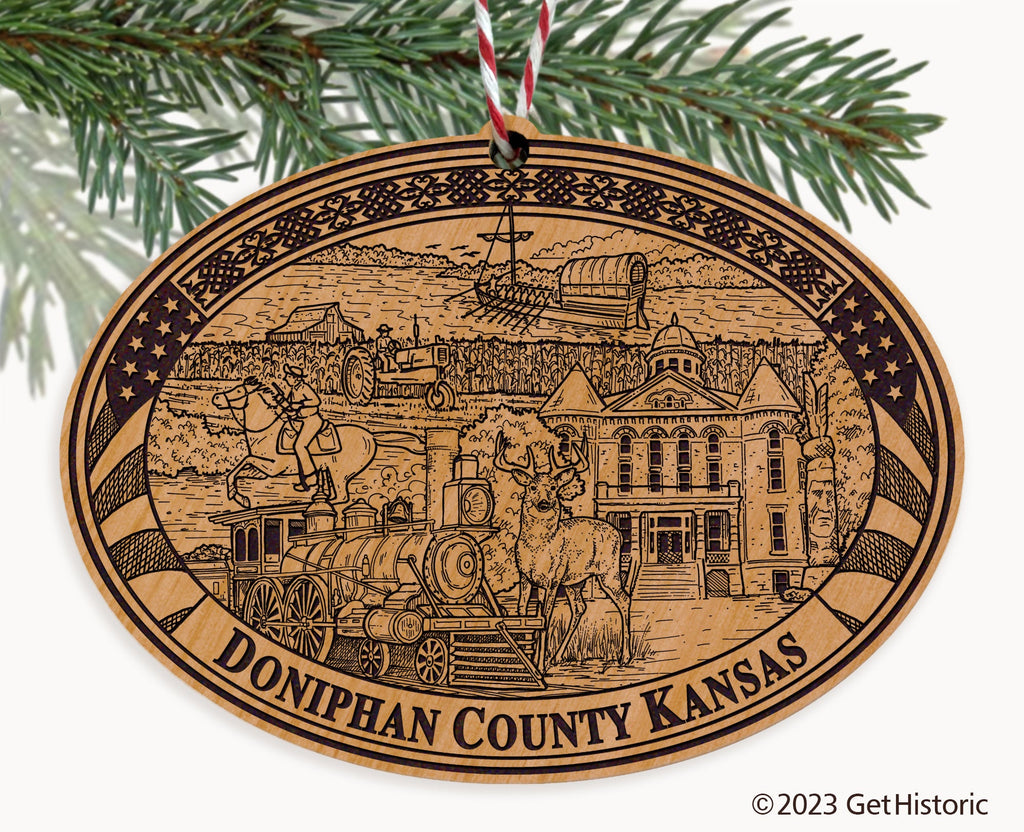 Doniphan County Kansas Natural Wood Engraved Ornament