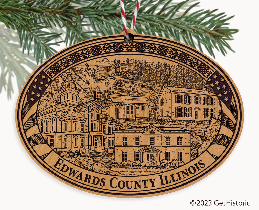 Edwards County Illinois Natural Wood Engraved Ornament