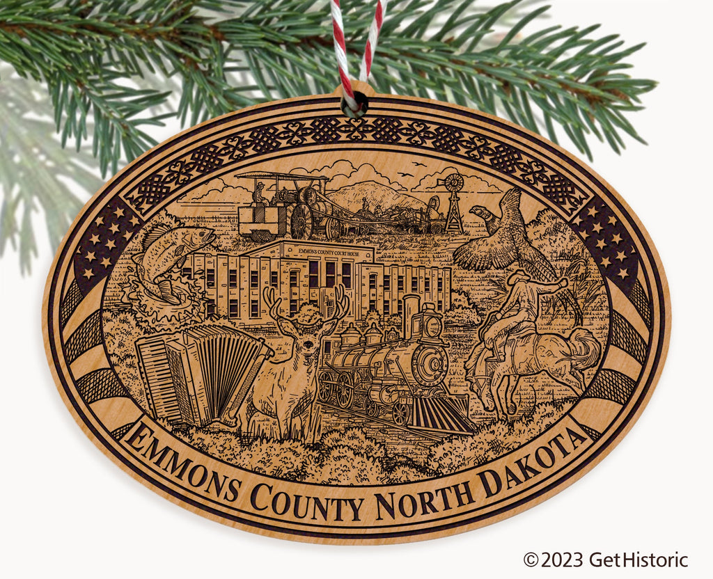 Emmons County North Dakota Natural Wood Engraved Ornament