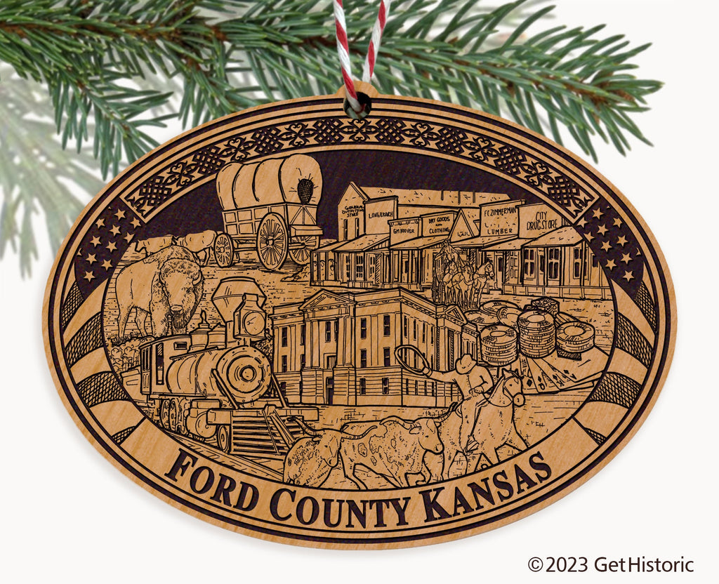 Ford County Kansas Natural Wood Engraved Ornament