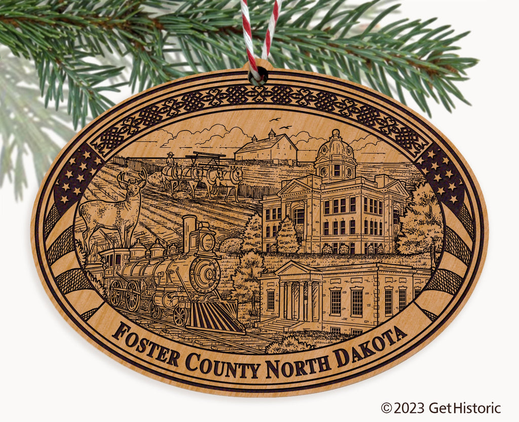Celebrate the history of Foster County with our exclusive Natural Wood Engraved Ornament. One side will feature unique artwork telling the story of your county's history. The other side features a FREE personalization to create a cherished keepsake. If you choose not to personalize, our Get Historic logo and scrollwork will be engraved.