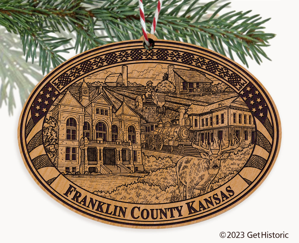 Celebrate the history of Franklin County with our exclusive Natural Wood Engraved Ornament. One side will feature unique artwork telling the story of your county's history. The other side features a FREE personalization to create a cherished keepsake. If you choose not to personalize, our Get Historic logo and scrollwork will be engraved.