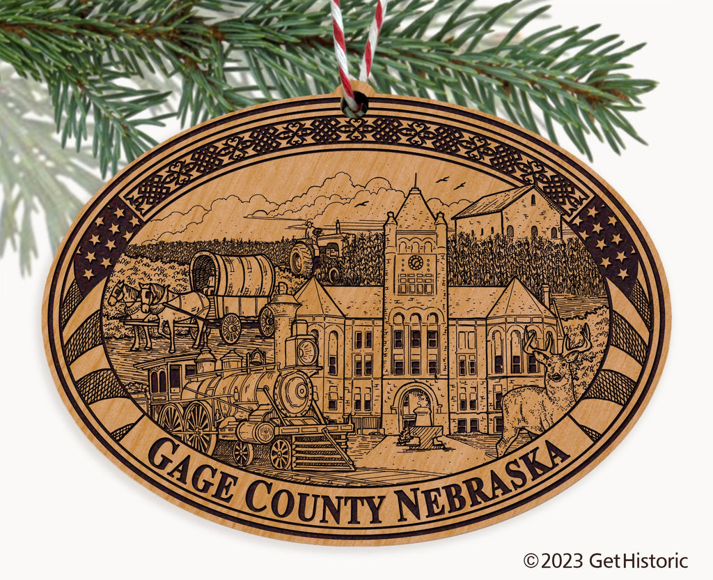 Celebrate the history of Gage County with our exclusive Natural Wood Engraved Ornament. One side will feature unique artwork telling the story of your county's history. The other side features a FREE personalization to create a cherished keepsake. If you choose not to personalize, our Get Historic logo and scrollwork will be engraved.