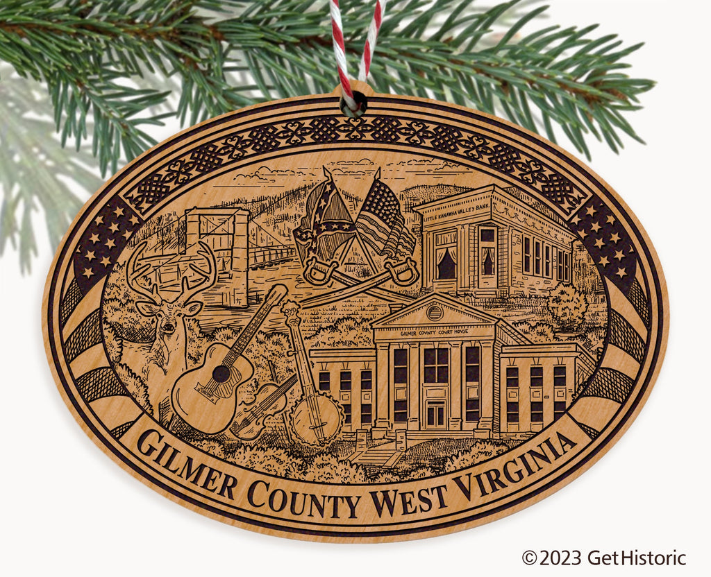Gilmer County West Virginia Natural Wood Engraved Ornament