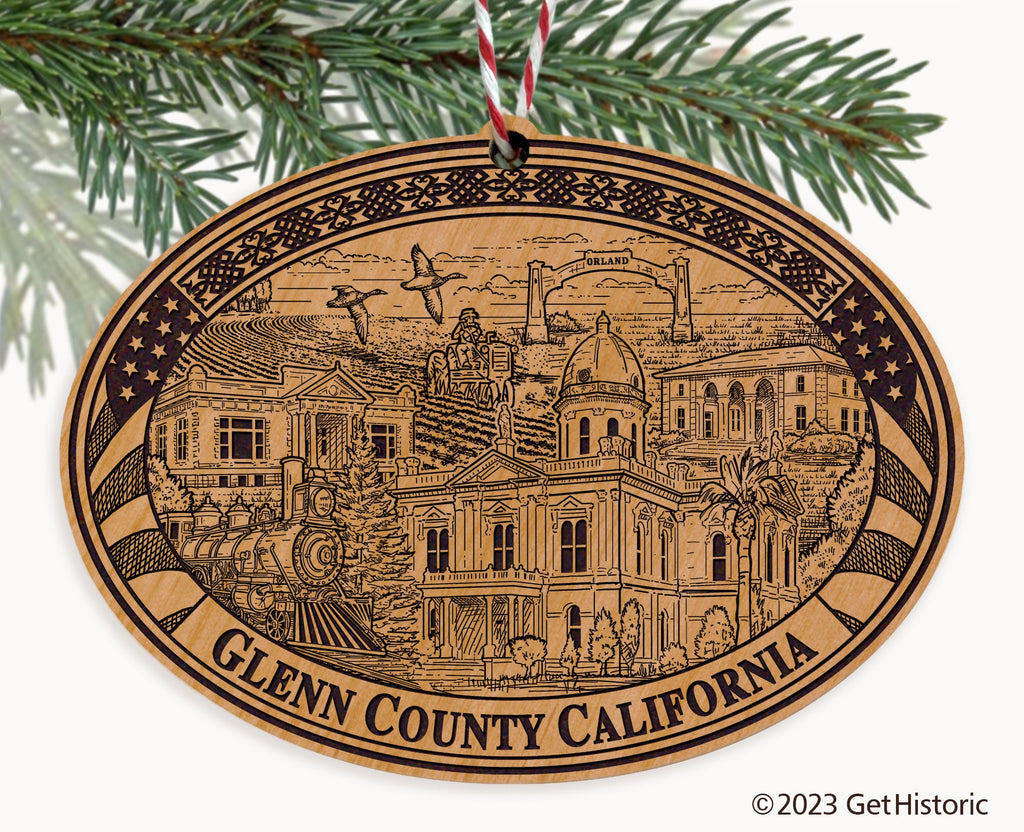 Celebrate the history of Glenn County with our exclusive Natural Wood Engraved Ornament. One side will feature unique artwork telling the story of your county's history. The other side features a FREE personalization to create a cherished keepsake. If you choose not to personalize, our Get Historic logo and scrollwork will be engraved.