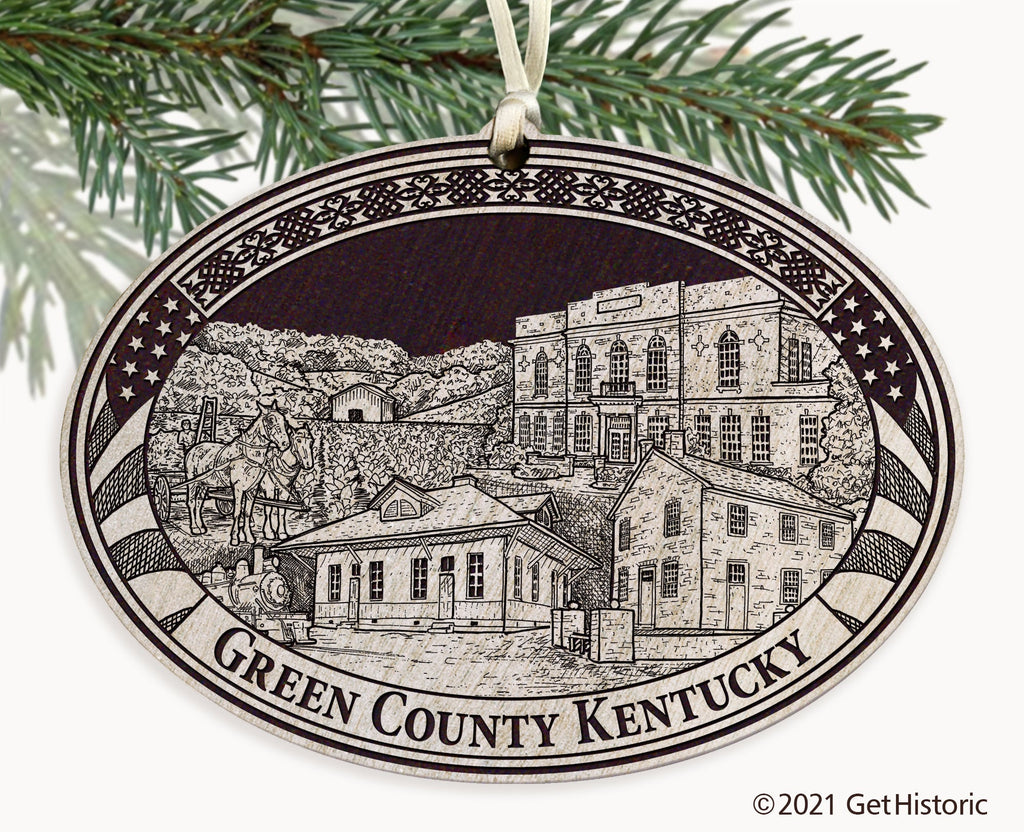 Green County Kentucky Whitewash Wood Engraved Ornament