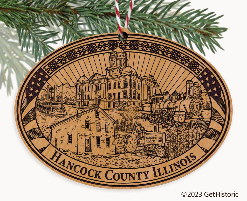 Hancock County Illinois Natural Wood Engraved Ornament