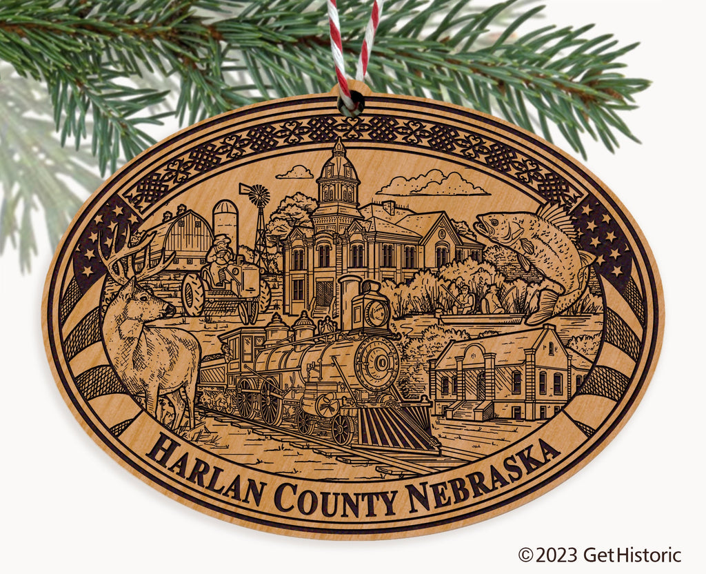 Harlan County Nebraska Natural Wood Engraved Ornament