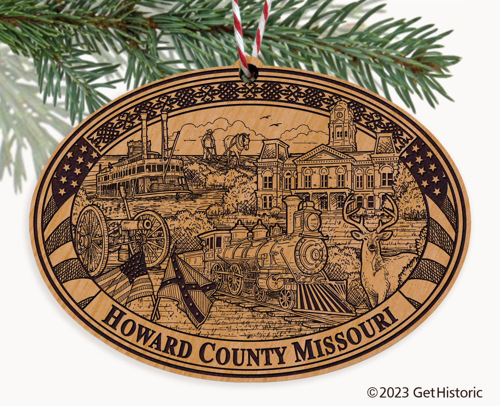 Celebrate the history of Howard County Missouri with our exclusive Natural Wood Engraved Ornament. One side will feature unique artwork telling the story of your county's history. The other side features a FREE personalization to create a cherished keepsake. If you choose not to personalize, our Get Historic logo and scrollwork will be engraved.