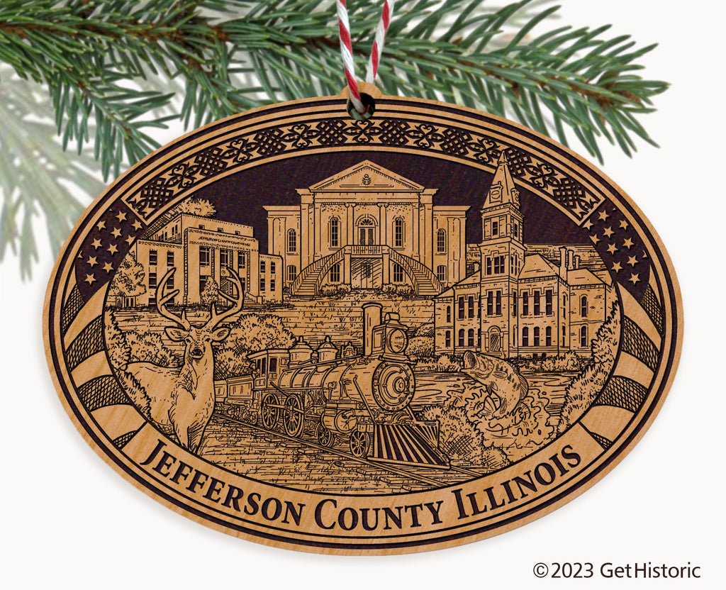 Jefferson County Illinois Natural Wood Engraved Ornament