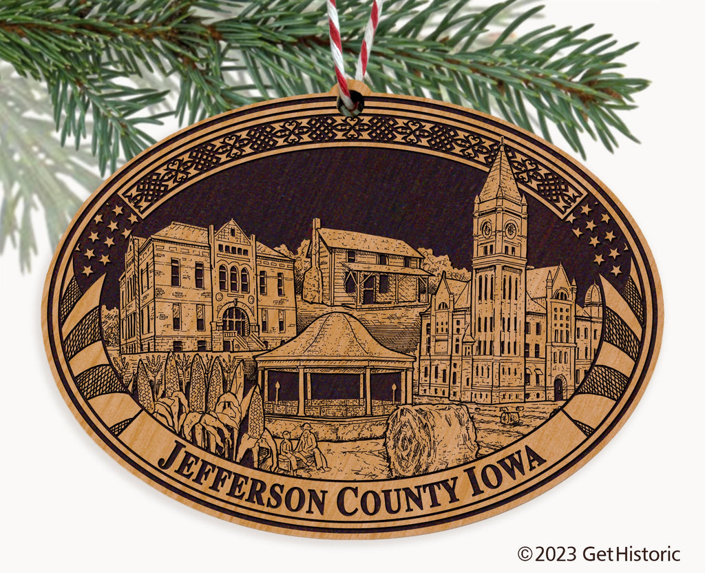 Jefferson County Iowa Natural Wood Engraved Ornament