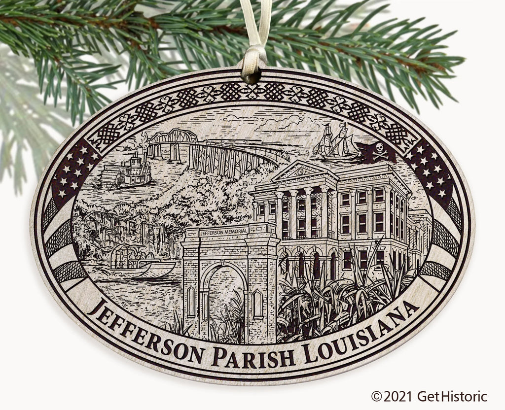 Jefferson Parish Louisiana Whitewash Wood Engraved Ornament