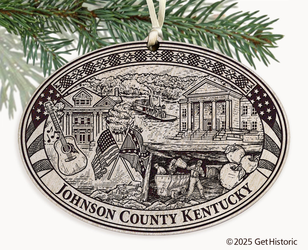 Johnson County Kentucky Whitewash Wood Engraved Ornament