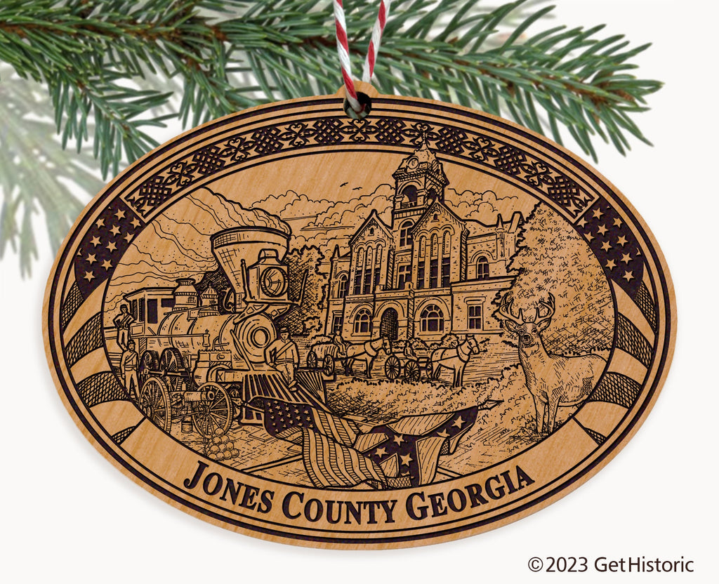 Celebrate the history of Jones County with our exclusive Natural Wood Engraved Ornament. One side will feature unique artwork telling the story of your county's history. The other side features a FREE personalization to create a cherished keepsake. If you choose not to personalize, our Get Historic logo and scrollwork will be engraved.