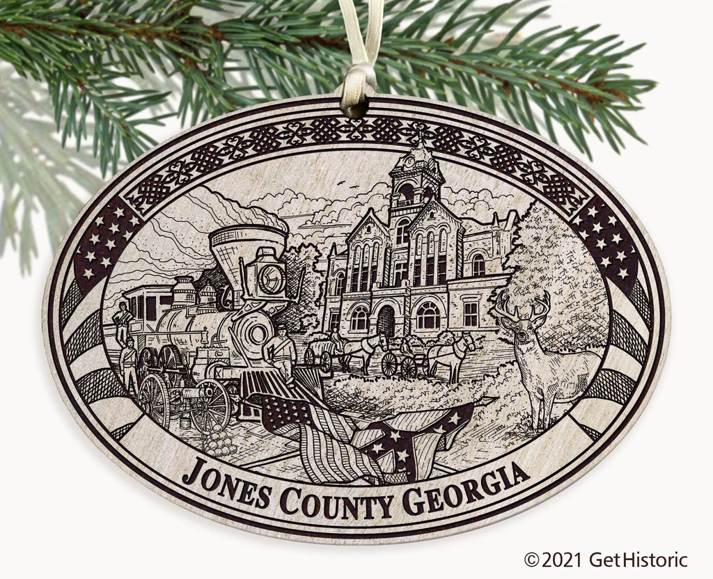 Jones County Georgia Whitewash Wood Engraved Ornament