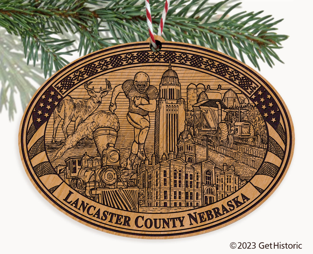 Lancaster County Nebraska Natural Wood Engraved Ornament