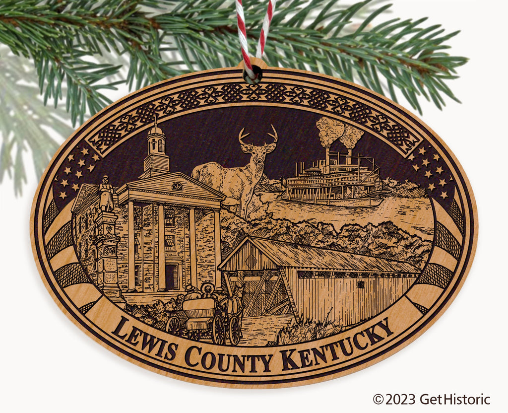 Lewis County Kentucky Natural Wood Engraved Ornament
