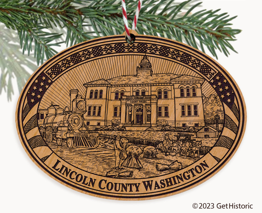 Celebrate the history of Lincoln County with our exclusive Natural Wood Engraved Ornament. One side will feature unique artwork telling the story of your county's history. The other side features a FREE personalization to create a cherished keepsake. If you choose not to personalize, our Get Historic logo and scrollwork will be engraved.