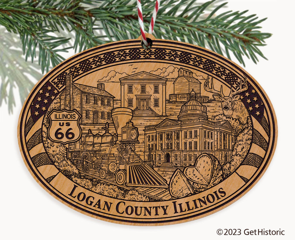 Celebrate the history of Logan County Illinois with our exclusive Natural Wood Engraved Ornament. One side will feature unique artwork telling the story of your county's history. The other side features a FREE personalization to create a cherished keepsake. If you choose not to personalize, our Get Historic logo and scrollwork will be engraved.