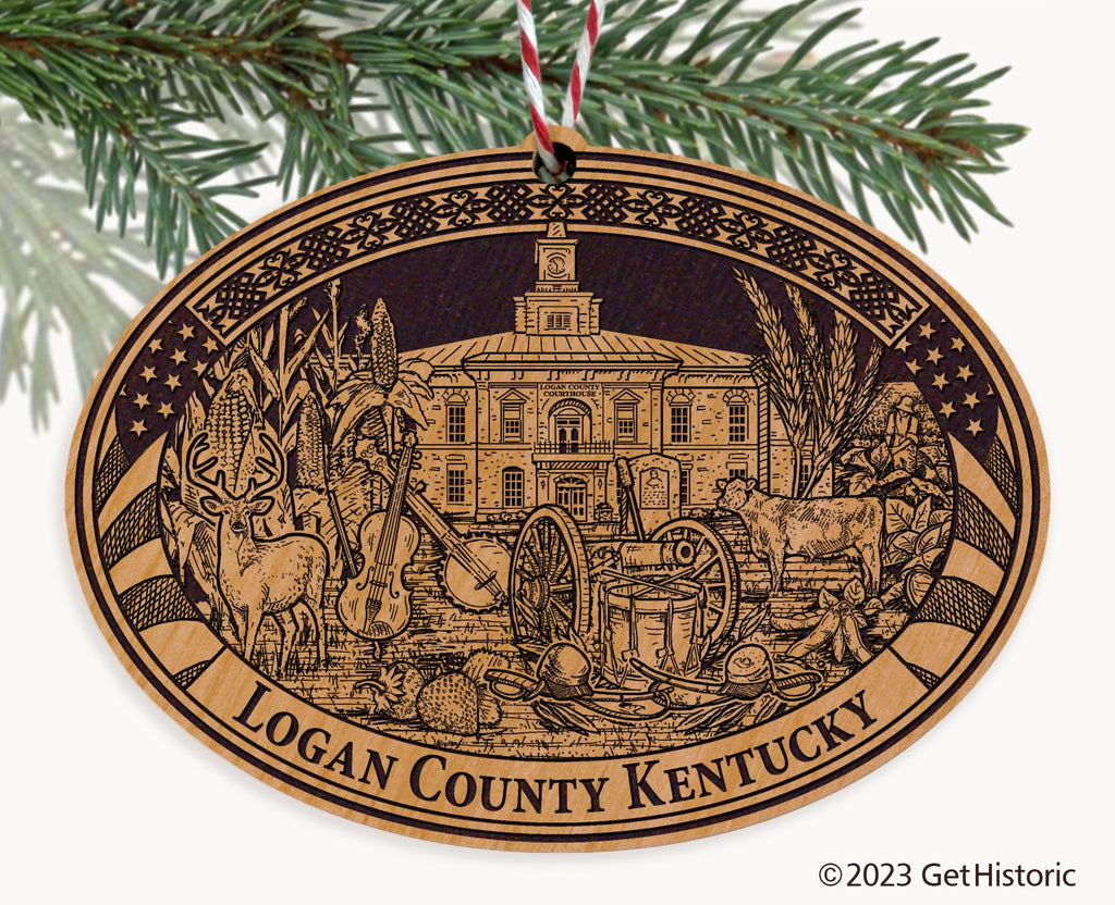 Logan County Kentucky Natural Wood Engraved Ornament