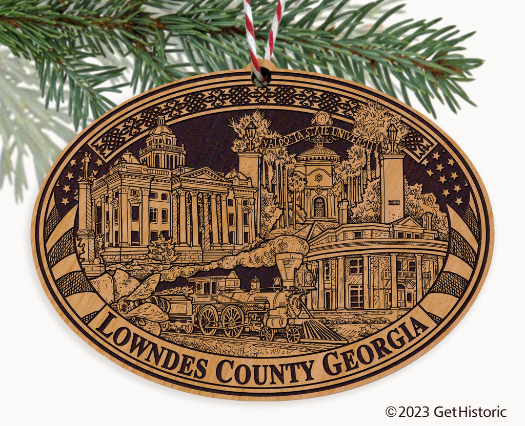 Lowndes County Georgia Natural Wood Engraved Ornament