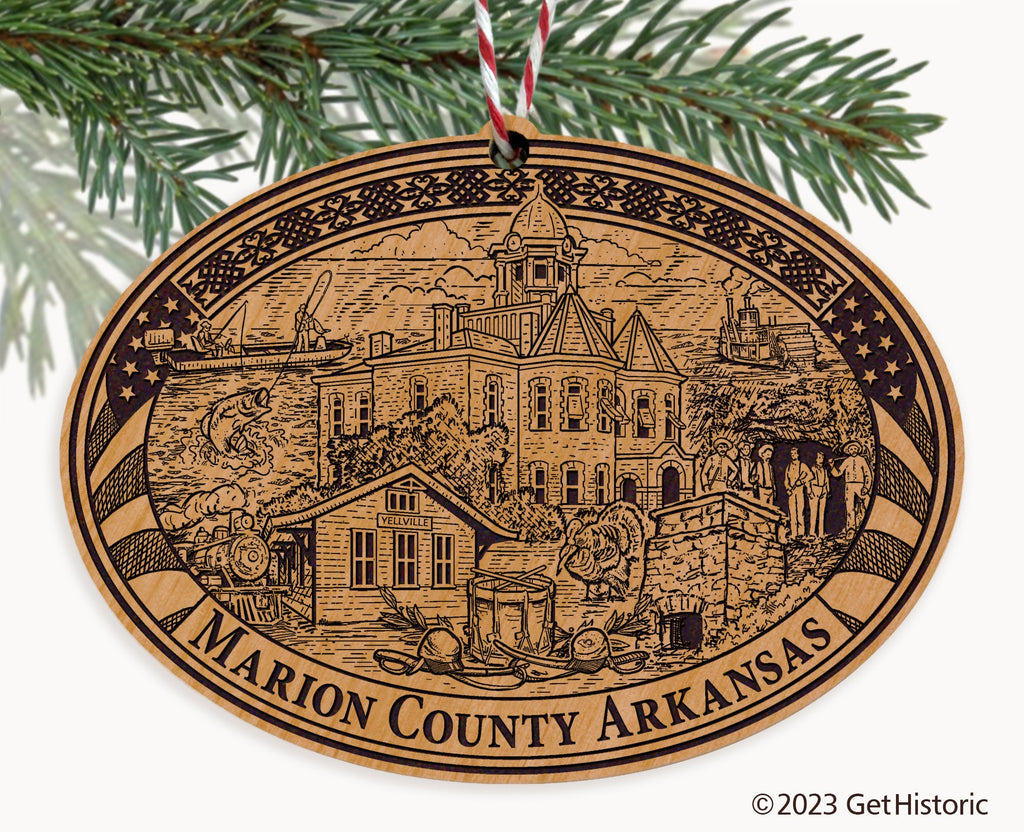 Celebrate the history of Marion County with our exclusive Natural Wood Engraved Ornament. One side will feature unique artwork telling the story of your county's history. The other side features a FREE personalization to create a cherished keepsake. If you choose not to personalize, our Get Historic logo and scrollwork will be engraved.