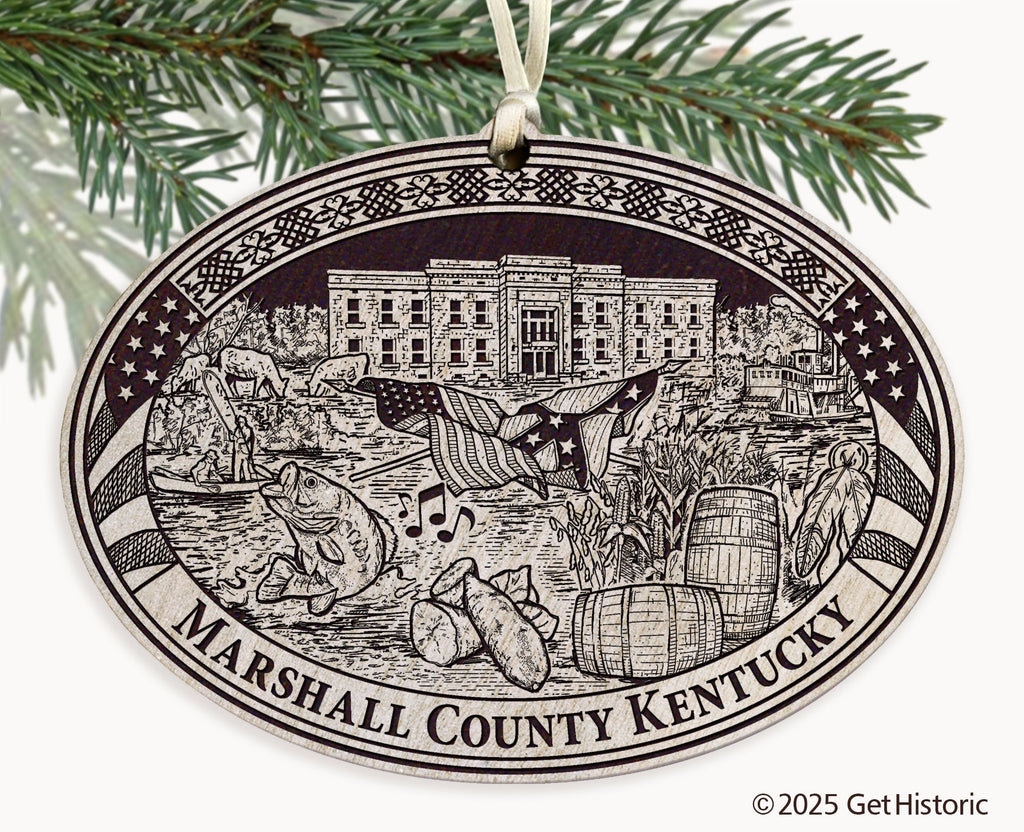 Marshall County Kentucky Whitewash Wood Engraved Ornament