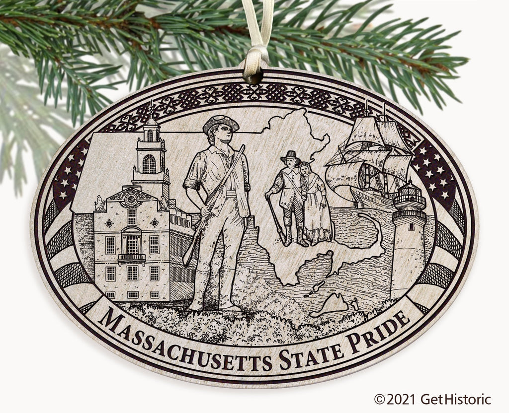 Celebrate the history of Massachusetts with our exclusive Personalized Wood Engraved Ornament. One side will feature unique artwork telling the story of your state's history. The other side will be personalized with your own wording to create a cherished keepsake. If you choose not to personalize, our Get Historic logo and scrollwork will be engraved.