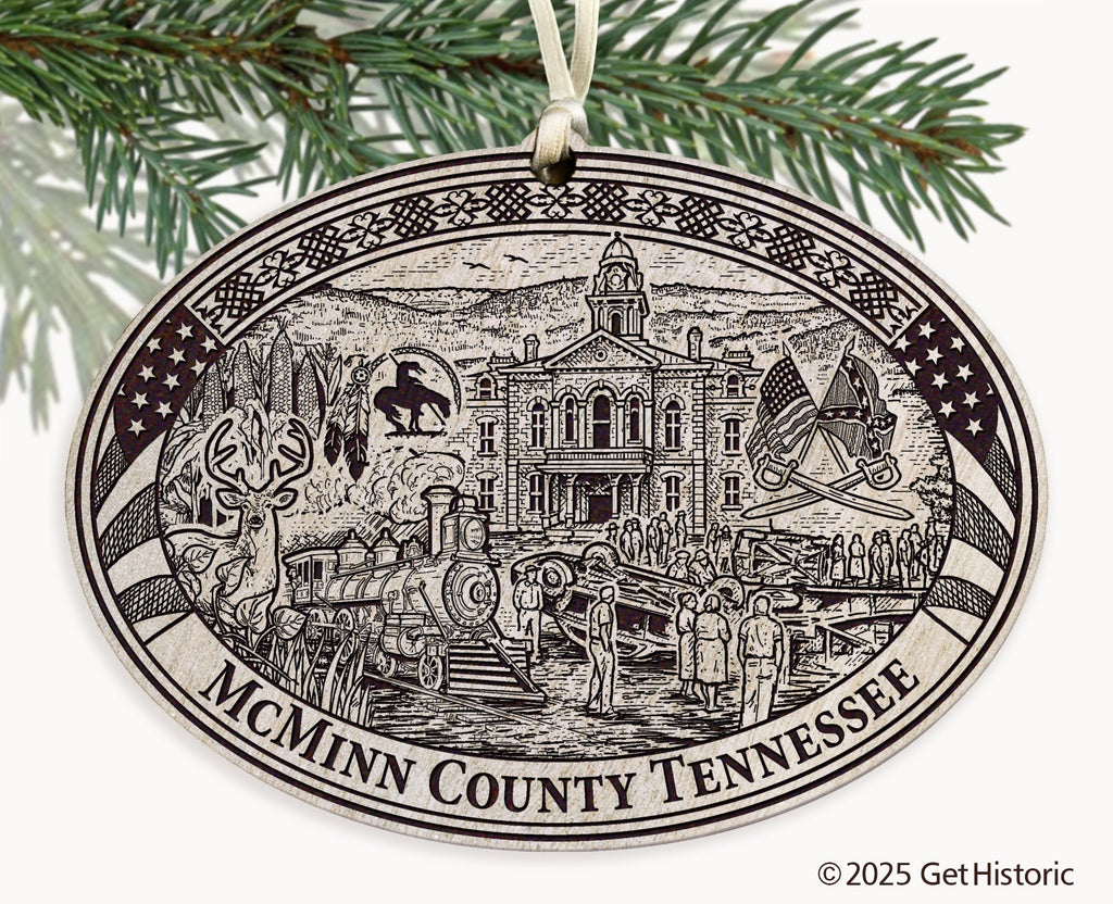 McMinn County Tennessee Whitewash Wood Engraved Ornament