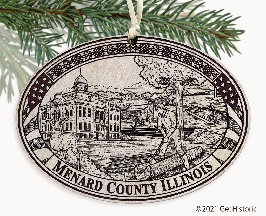 Menard County Illinois Whitewash Wood Engraved Ornament