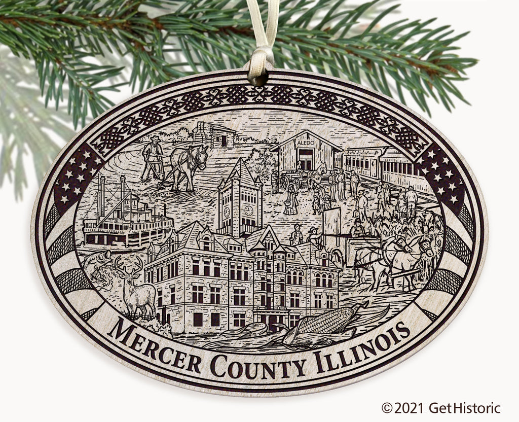 Mercer County Illinois Whitewash Wood Engraved Ornament