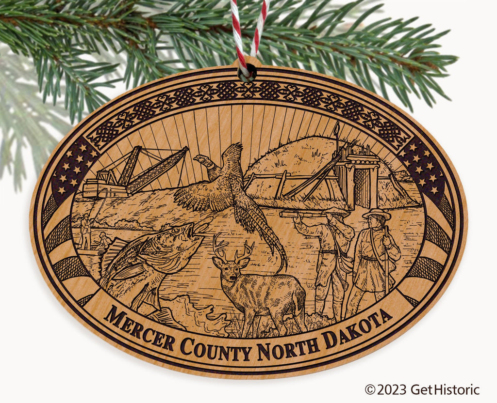 Mercer County North Dakota Natural Wood Engraved Ornament