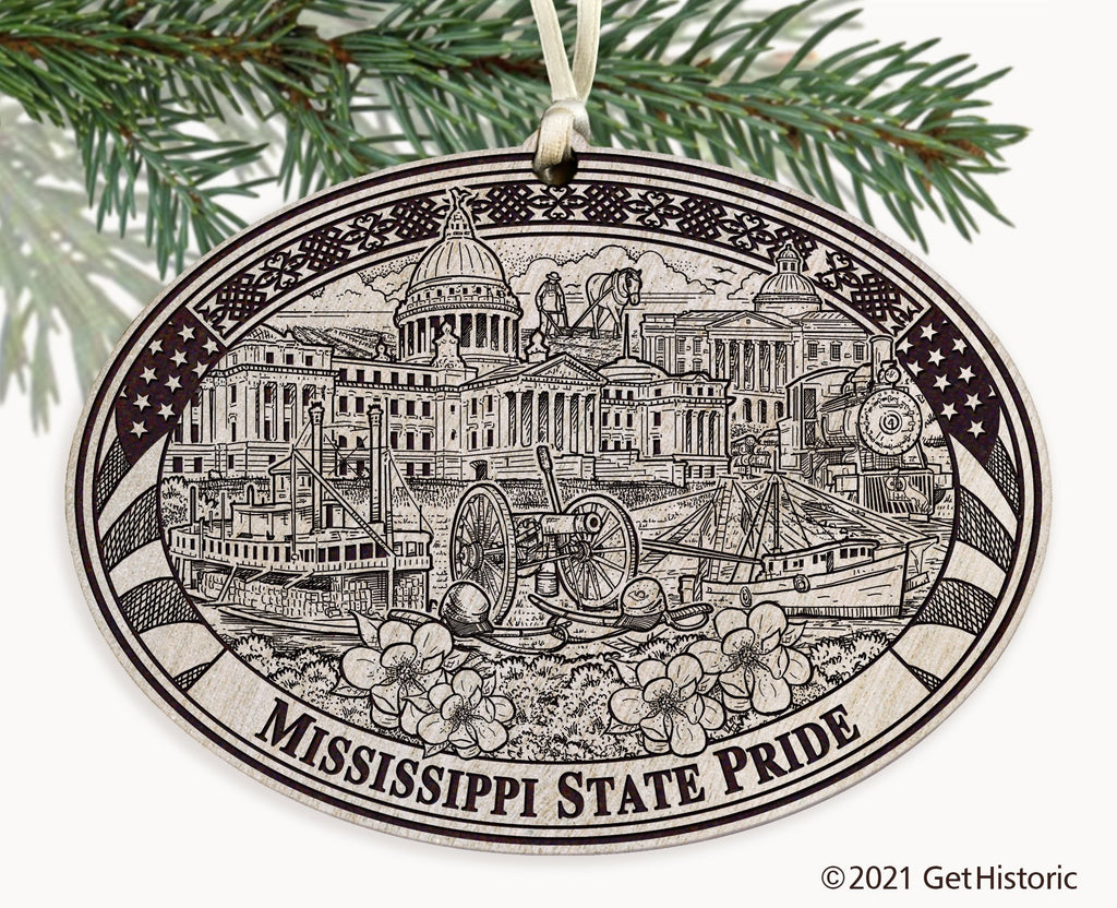 Celebrate the history of Mississippi with our exclusive Personalized Wood Engraved Ornament. One side will feature unique artwork telling the story of your state's history. The other side will be personalized with your own wording to create a cherished keepsake. If you choose not to personalize, our Get Historic logo and scrollwork will be engraved.
