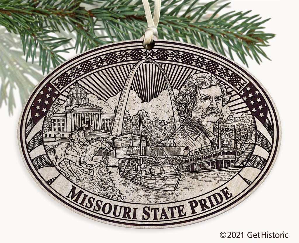 Missouri State Whitewash Wood Engraved Ornament