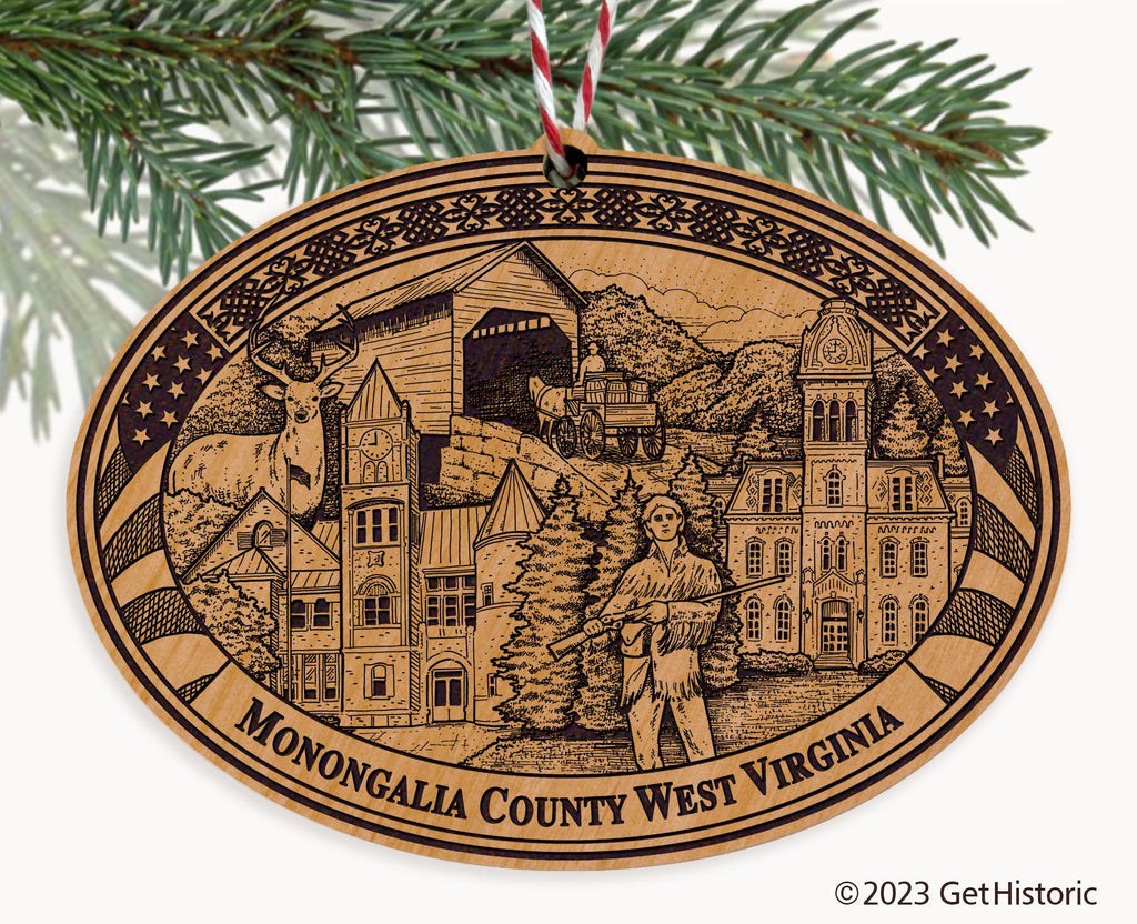 Monongalia County West Virginia Natural Wood Engraved Ornament