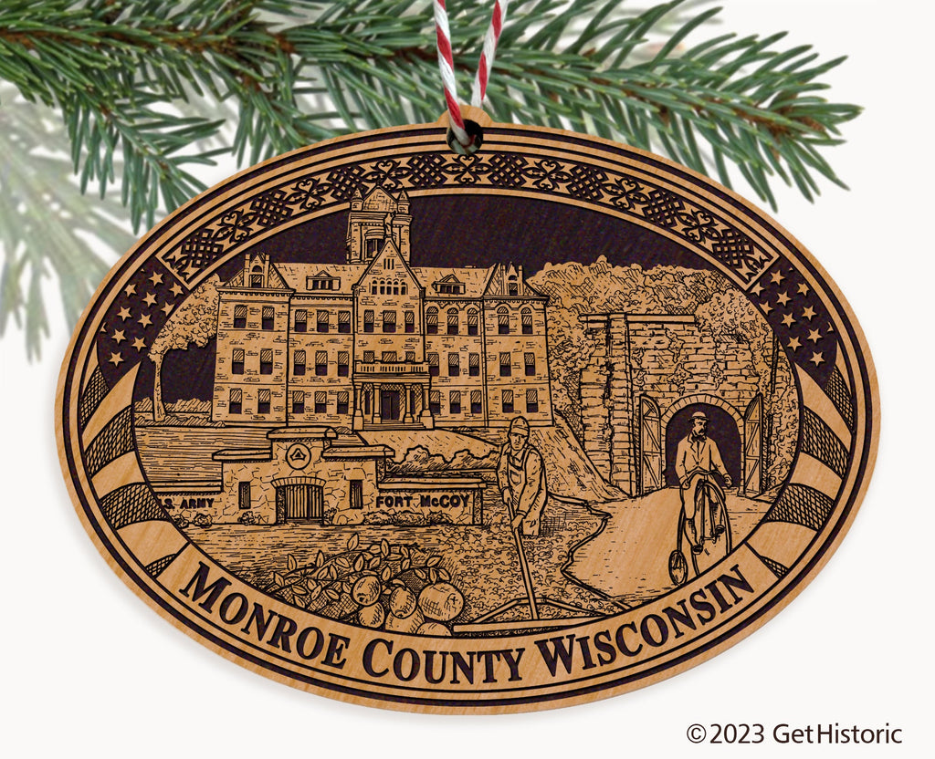 Monroe County Wisconsin Natural Wood Engraved Ornament