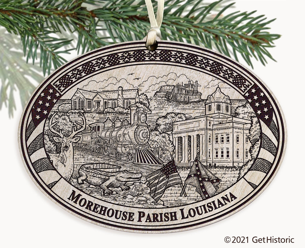 Morehouse Parish Louisiana Whitewash Wood Engraved Ornament