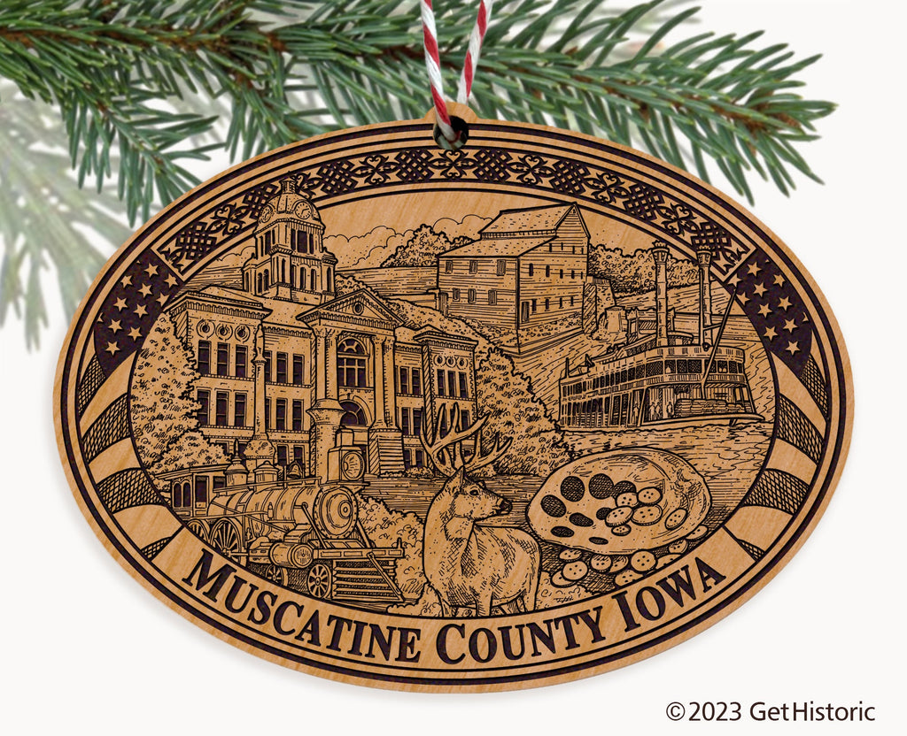 Muscatine County Iowa Natural Wood Engraved Ornament
